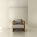The Gordon Chair is a stylish armchair that fuses natural charm with modern design. Crafted with a sturdy wooden frame and finely woven rattan, it offers an airy, organic look while ensuring durability. The clean lines and comfortable cushions give it a contemporary edge, making it a perfect fit for relaxed yet refined living spaces.